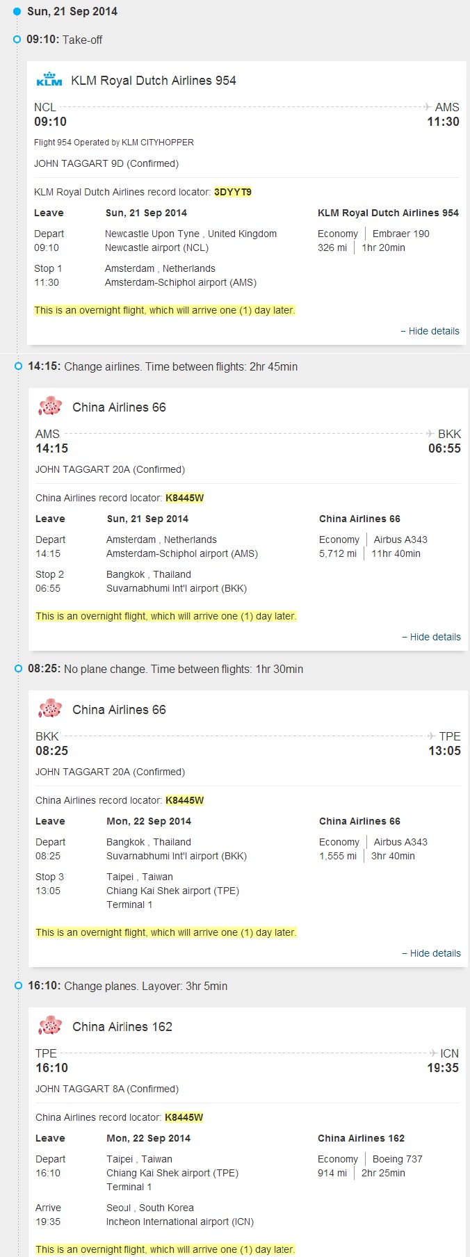En route to Korea…..bit of a hassle it seems but you´re almost there.